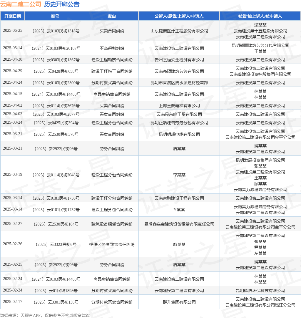 本站消息盈富忧配,根据天眼查APP显示,近日公布了一则云南建投第二建设有限公司作为原告/上诉人的开庭公告,详细内容如下: